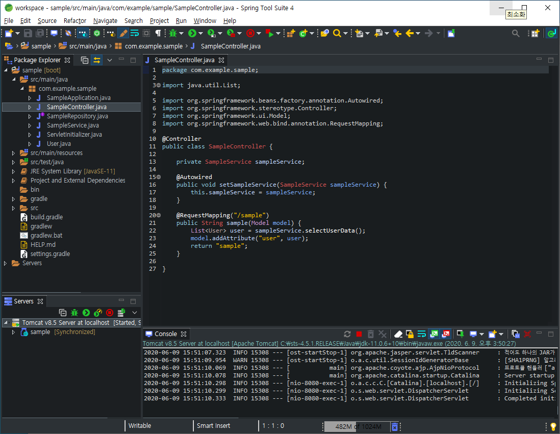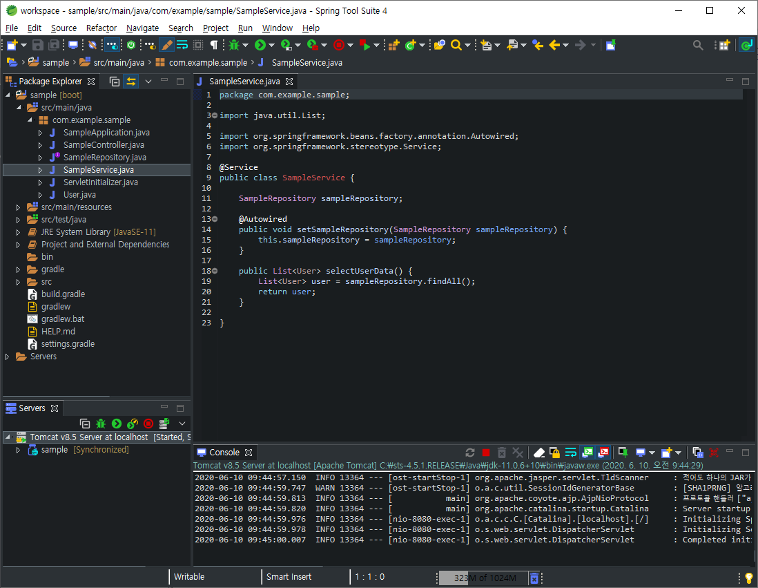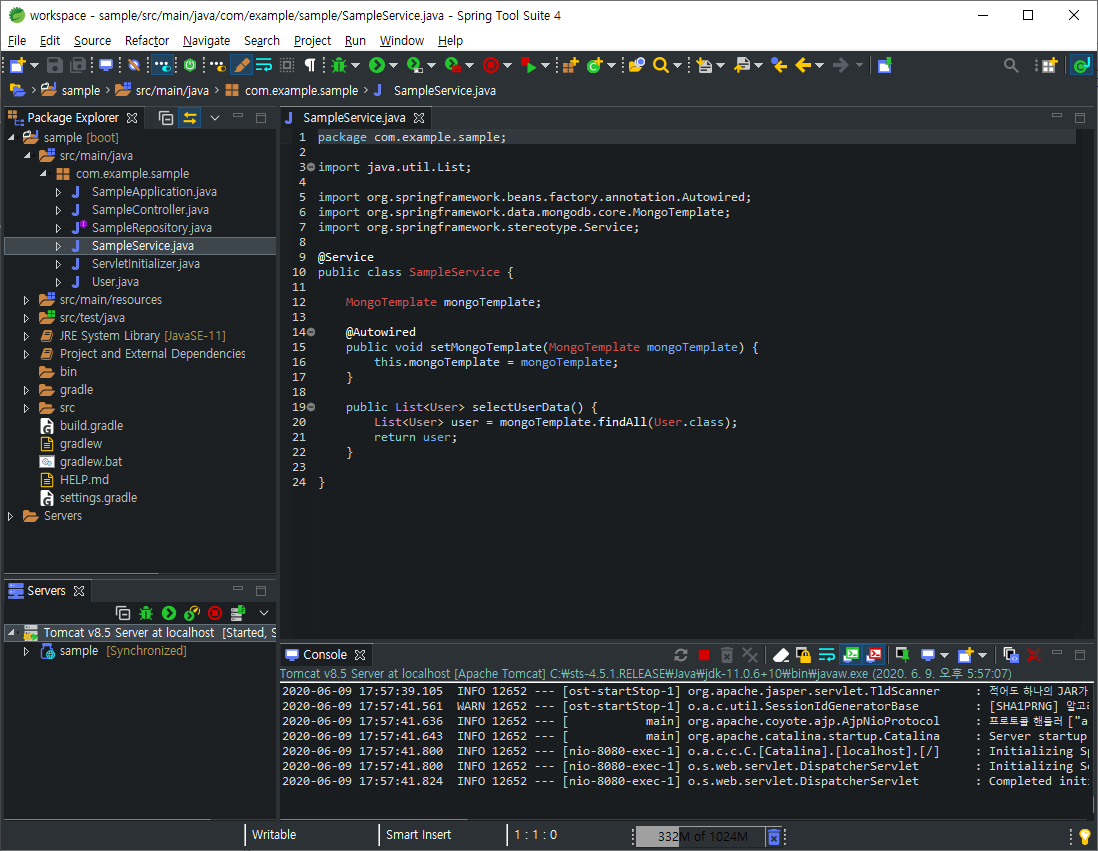 => SampleService.java 작성 (MongoTemplate 방식)