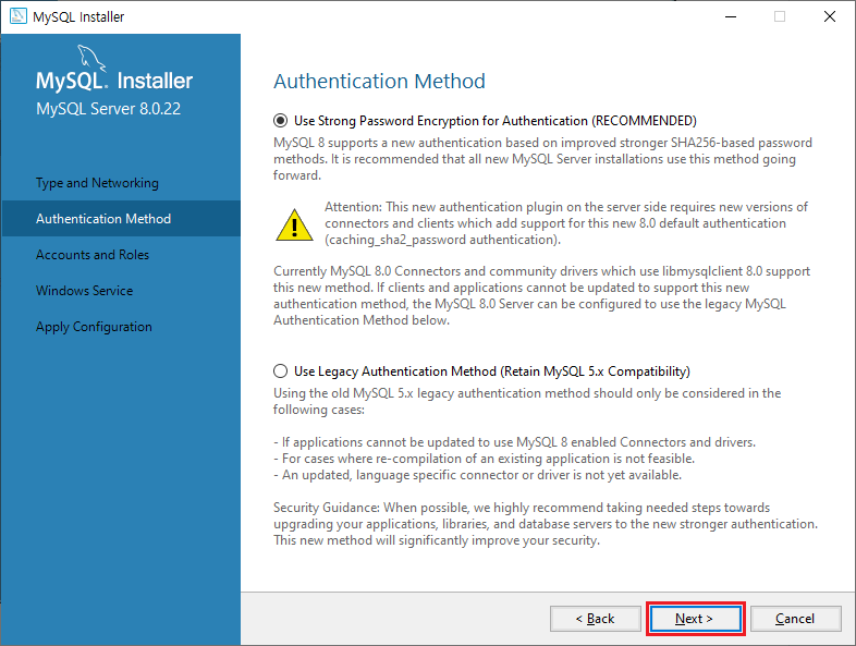 => Root 계정 비밀번호 입력 후 Next 버튼 클릭