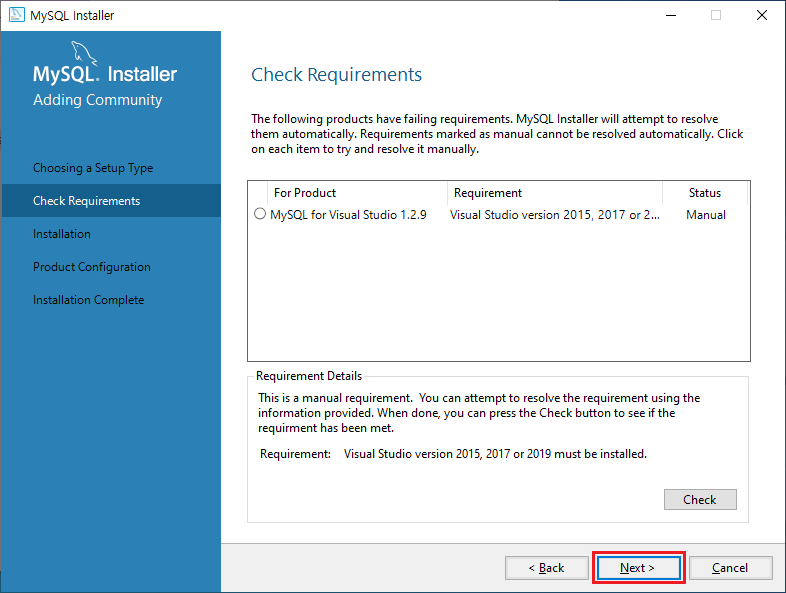 => root 계정 비밀번호 입력 후 Check 버튼 클릭