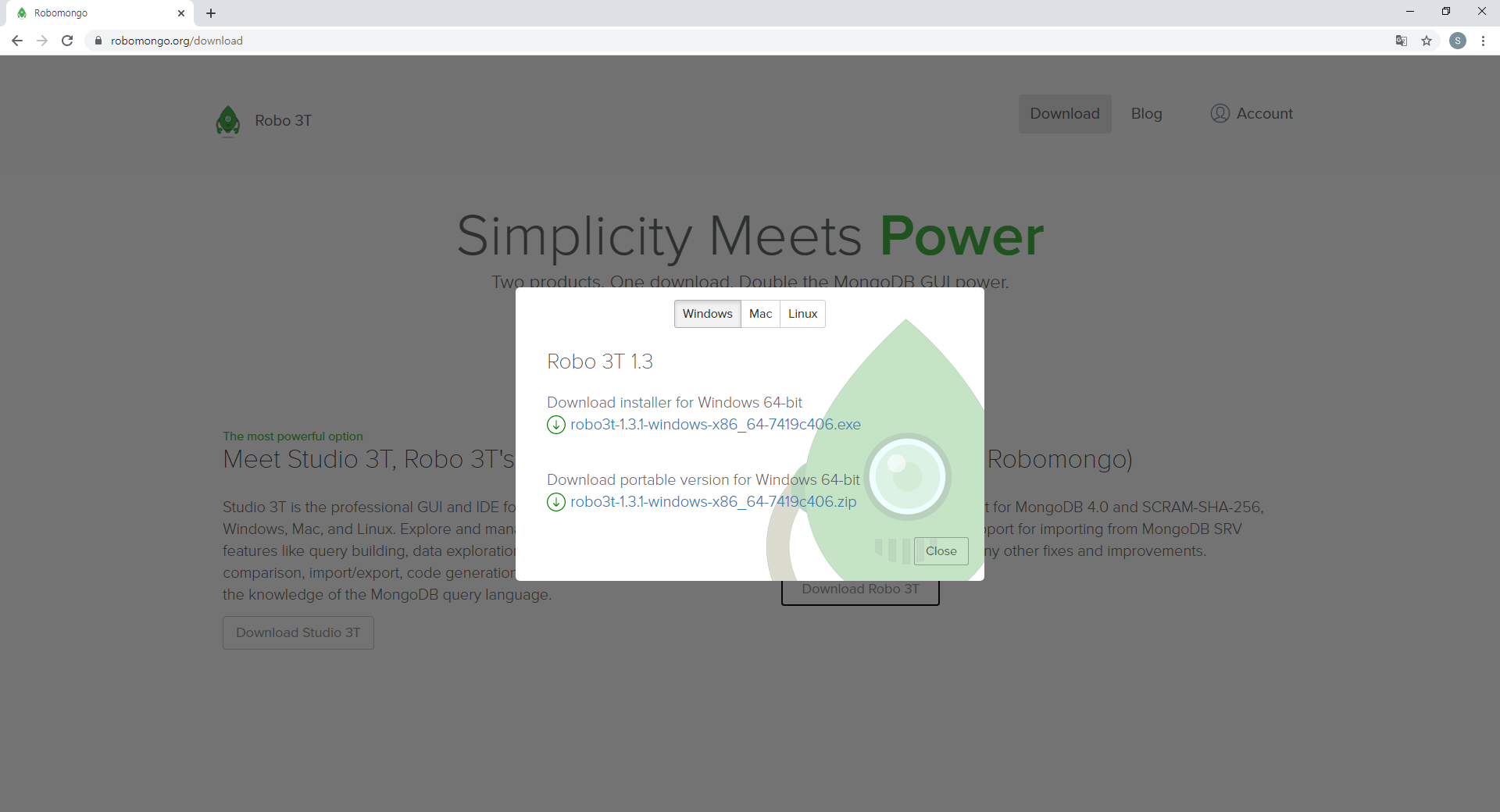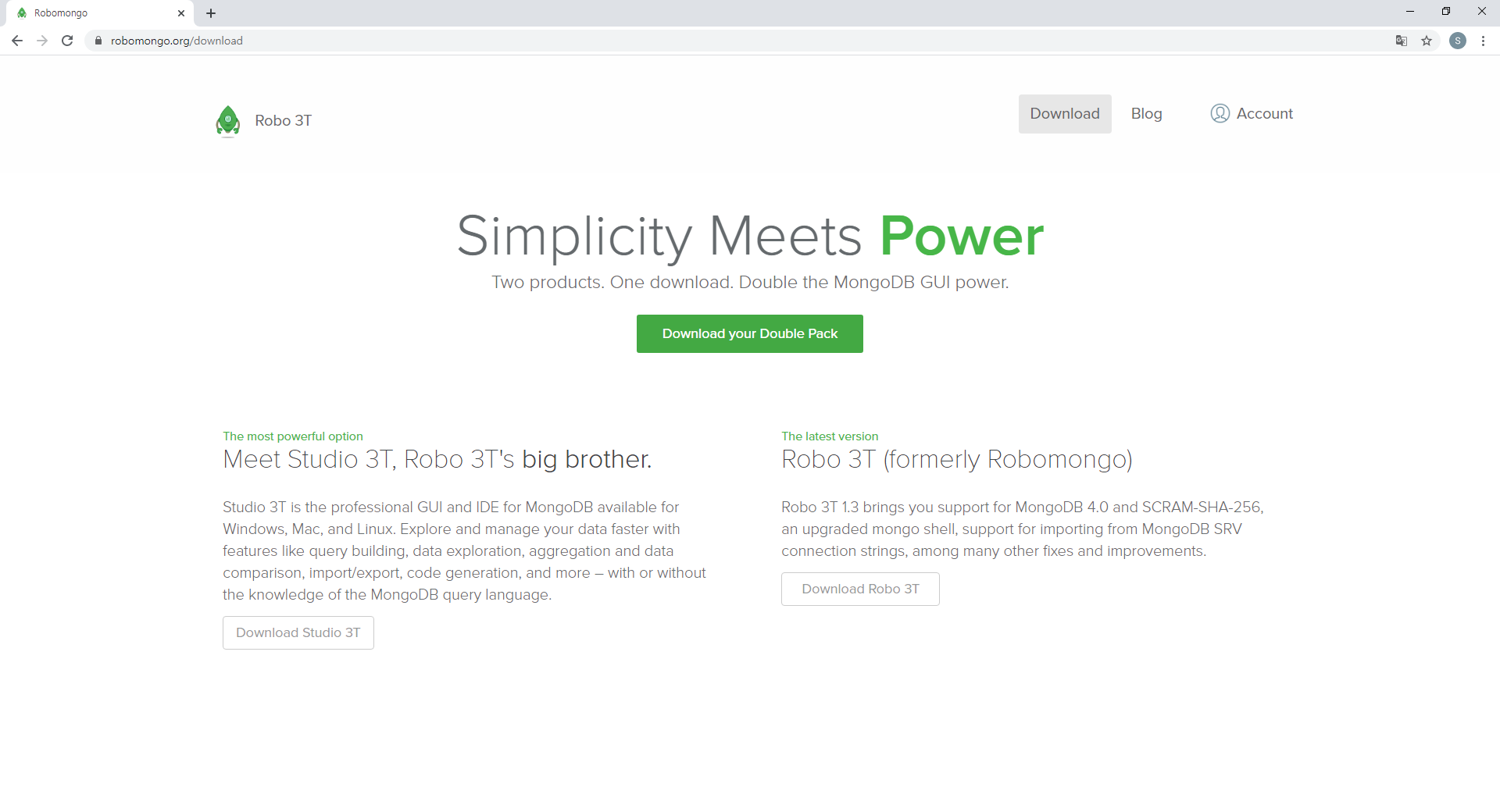 => Robo 3T (formerly Robomongo) 아래에 있는 Download Robo 3T 버튼을 클릭합니다.