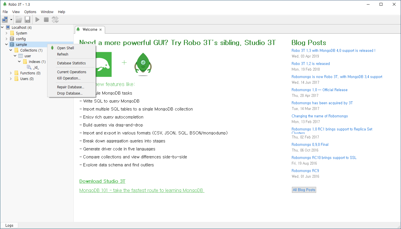 Robo 3T | Free, open-source MongoDB GUI (formerly Robomongo)